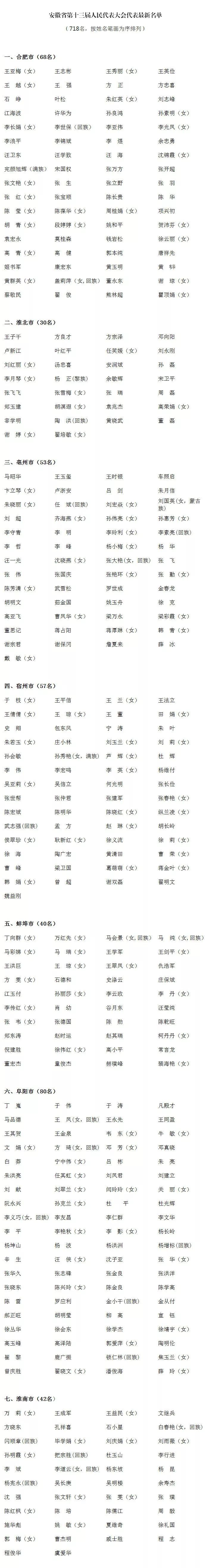 718人!安徽省第十三届人民代表大会代表最新名单出炉