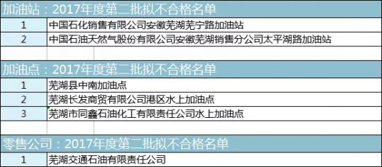 芜湖这几家加油站(点)年检拟予以不合格(名单)