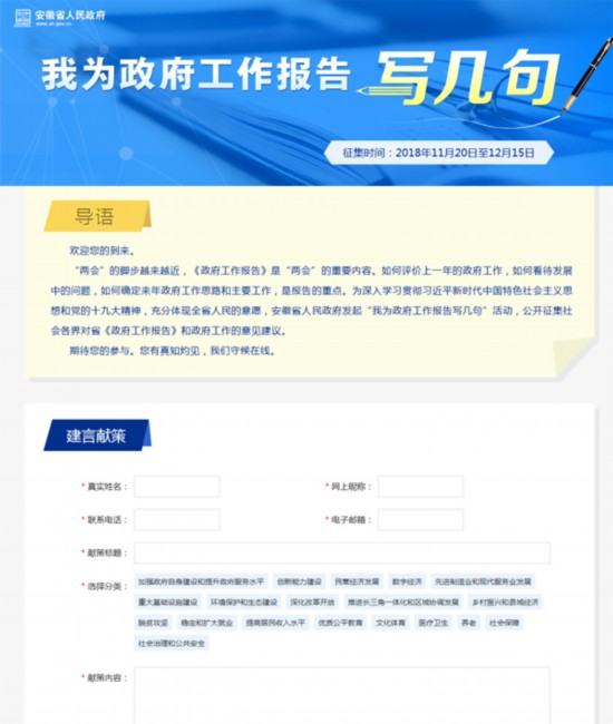 安徽省人民政府邀请网友写《政府工作报告》啦!
