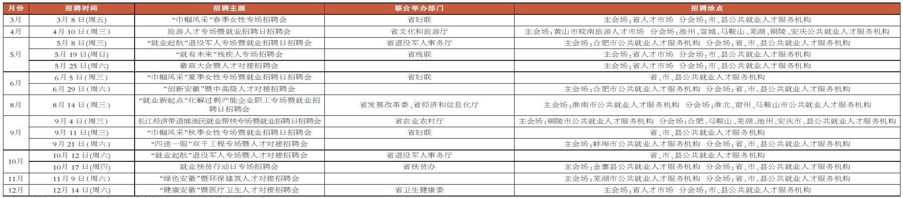 2.“春风行动”和大别山等革命老区、淮河行蓄洪区定向招工专场招聘会计划另行发布。