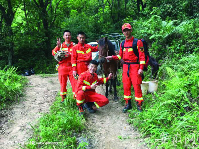 2018 年7 月31 日,群众一匹运输货物的马跌进了一个8 米的深坑,汪全浩带领中队官兵历经5 个多小时成功救援。长时间的救援,汗水湿透了衣服,他累得精疲力竭,瘫倒在地上,却发出会心的微笑。