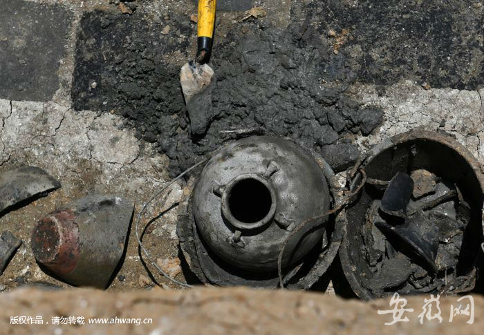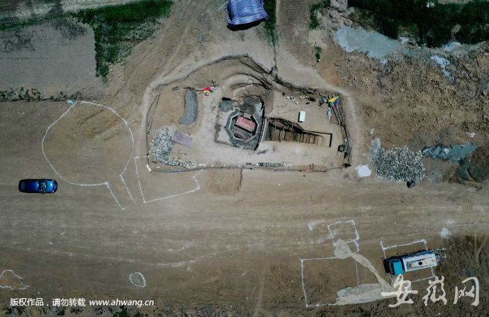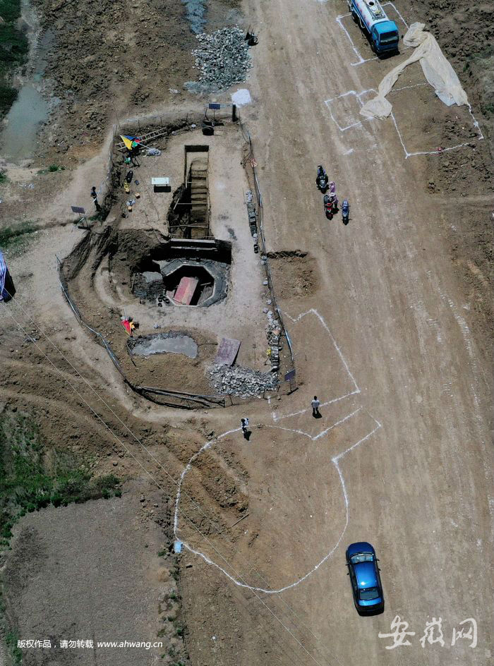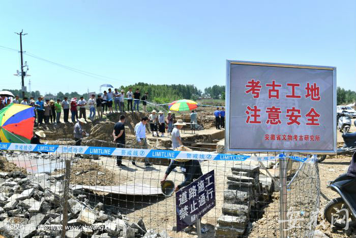 日前,新安晚报、安徽网、大皖客户端记者驱车来到考古发掘现场。考古人员正在对施工中暴露的墓葬进行抢救性考古发掘。墓葬周围已经用铁丝网进行了封闭,并拉上了警戒线。附近聚集了很多围观的群众。