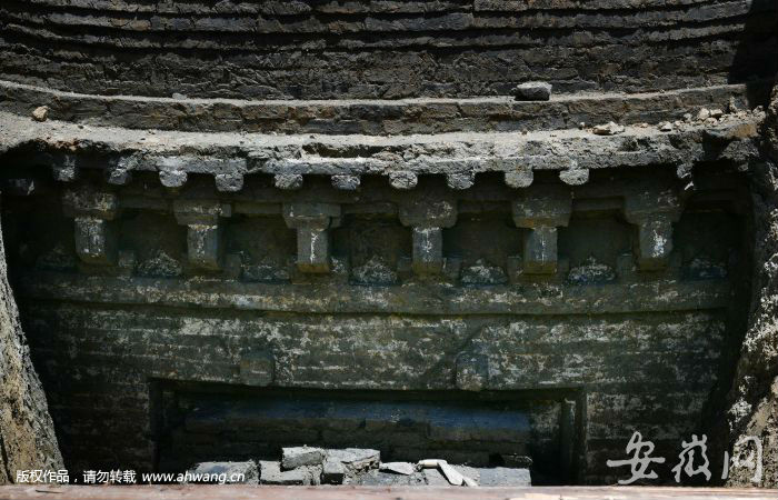 另据考古人员介绍,该墓葬还有一个比较罕见的特征——从外形上看,古墓墓门饰以青砖雕刻成仿木结构的建筑房檐,非常漂亮,这在合肥乃至整个安徽地区已发现的同时期古墓中属首例。