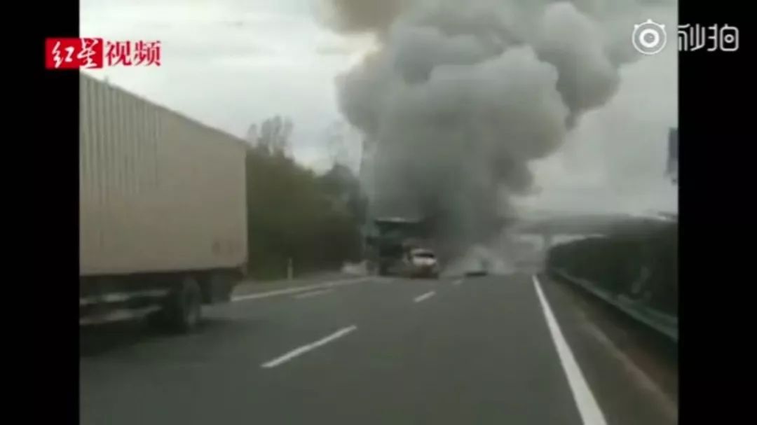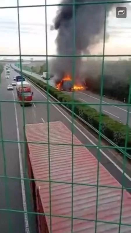合六叶高速多车追尾,客车着火