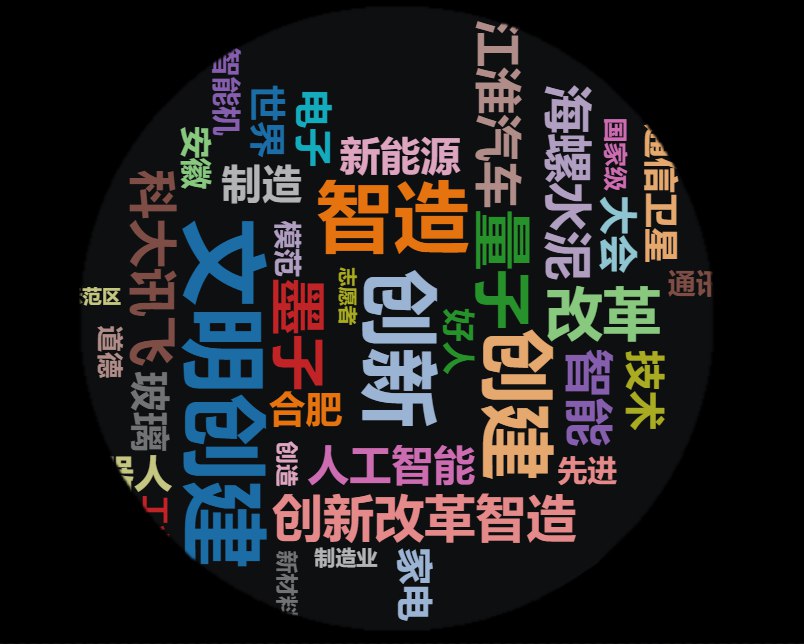 人民网安徽舆情中心数据显示,近五年,安徽形象变化巨大。2015年,安徽的词云图上还多是“农业”“务工”等关键词。2019年的词云图上,“创新”“改革”“智造”“文明创建”等关键词占据了主角。这得益于全球首颗量子通信卫星“墨子号”、全球最薄0.12毫米触控玻璃等创造的一项项“世界第一”,安徽凭借智能家电、电子信息、新能源汽车、工业机器人、人工智能等先进制造挺起科技创新和现代工业的脊梁。