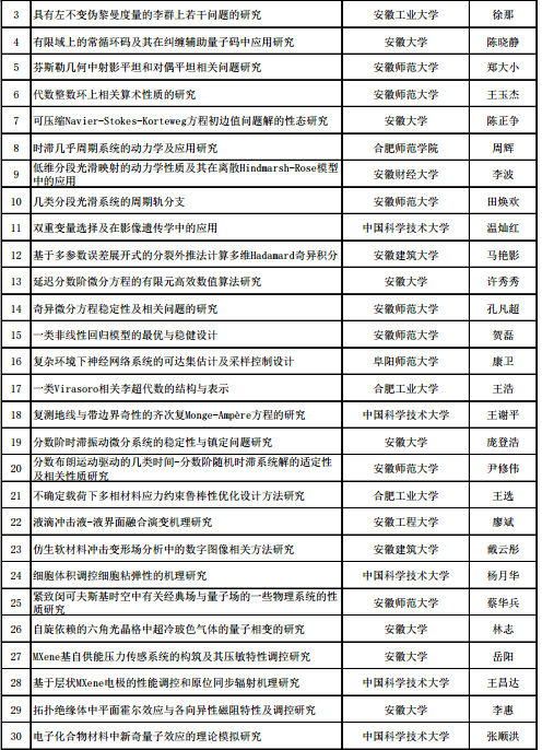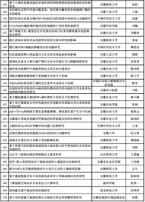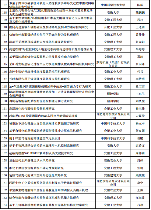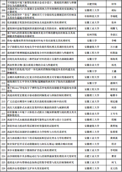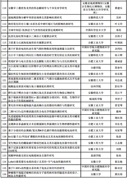 据安徽省科技厅消息:4月29日,安徽省科学技术厅发布关于2020年度安徽省自然科学基金拟立项项目的公示。具体如下: