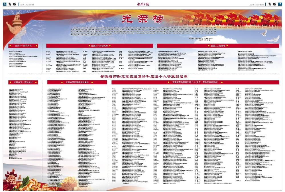 安徽省劳动竞赛委员会 安徽省总工会 2021年4月30日