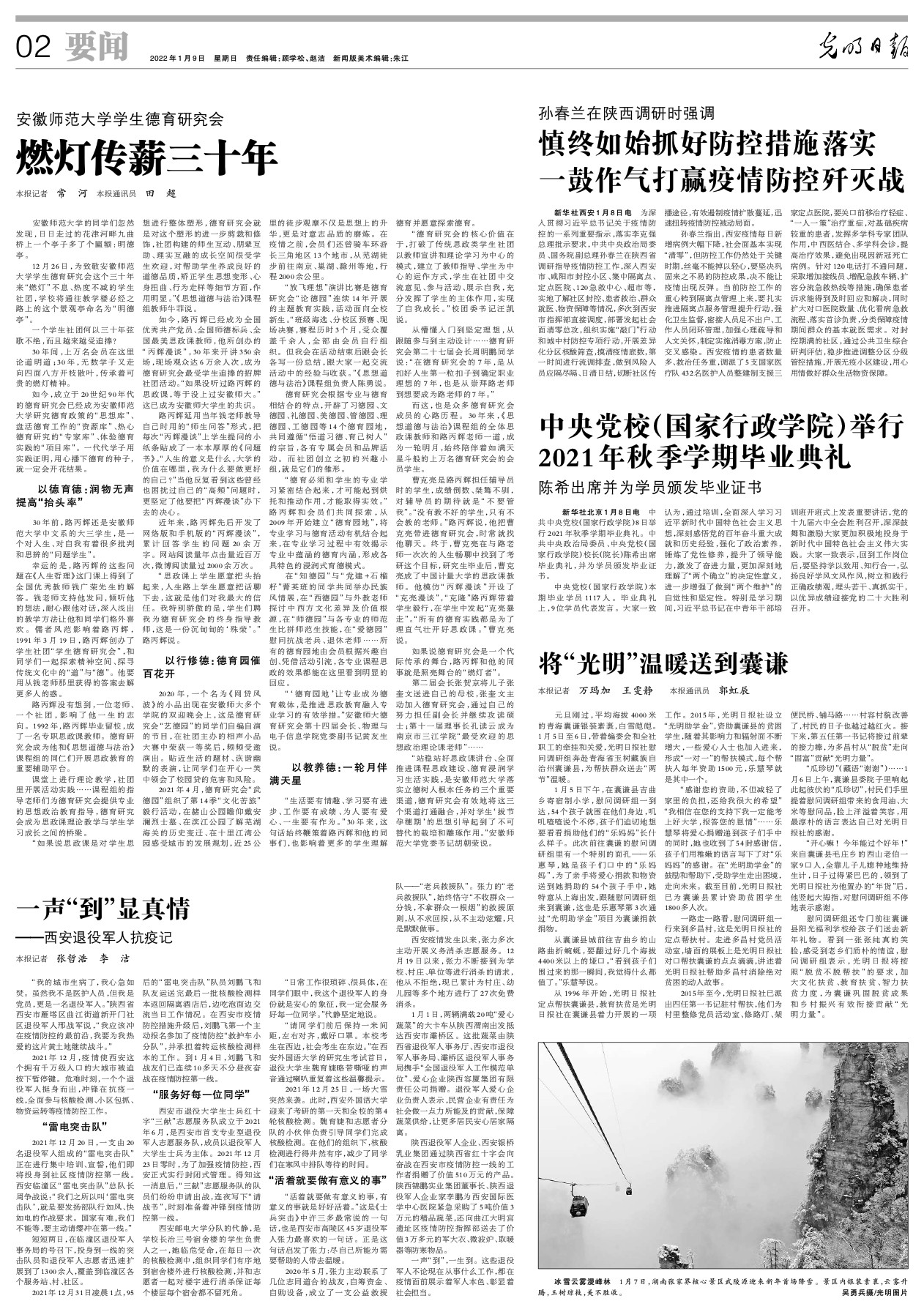 “站稳站好思政课讲台、全面推进课程思政建设、德育浸润学习生活实践,是安徽师范大学落实立德树人根本任务的三个重要渠道,德育研究会有效地将这三个渠道打通融合,并对学生‘拔节孕穗期’的思想引导起到了不可替代的栽培和雕琢作用。”安徽师范大学党委书记胡朝荣说。
