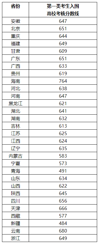 对于第二类考生,高考成绩达到所在省份本科一批录取控制分数线(合并本科录取批次省份单独划定的相应分数线)即可入围。
