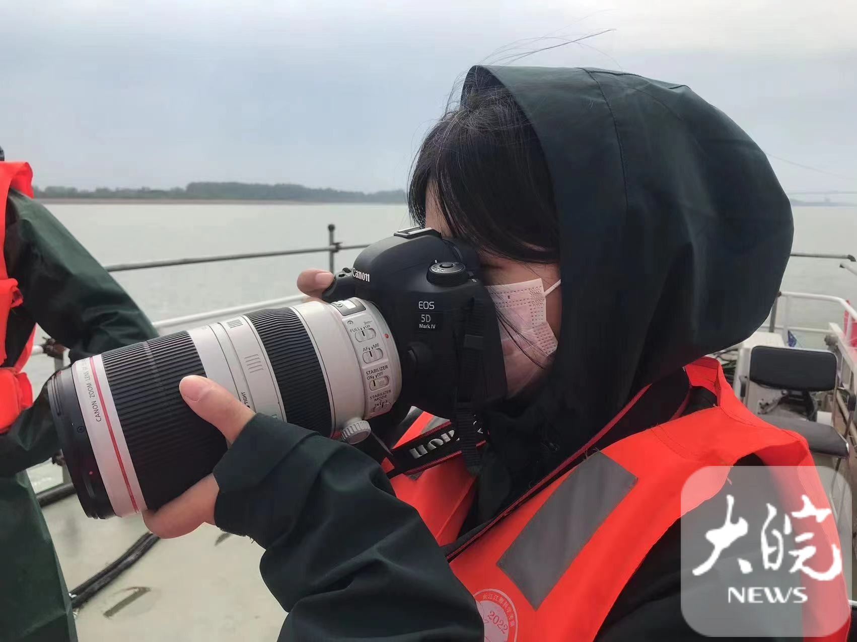 黄书雅在拍摄江豚。