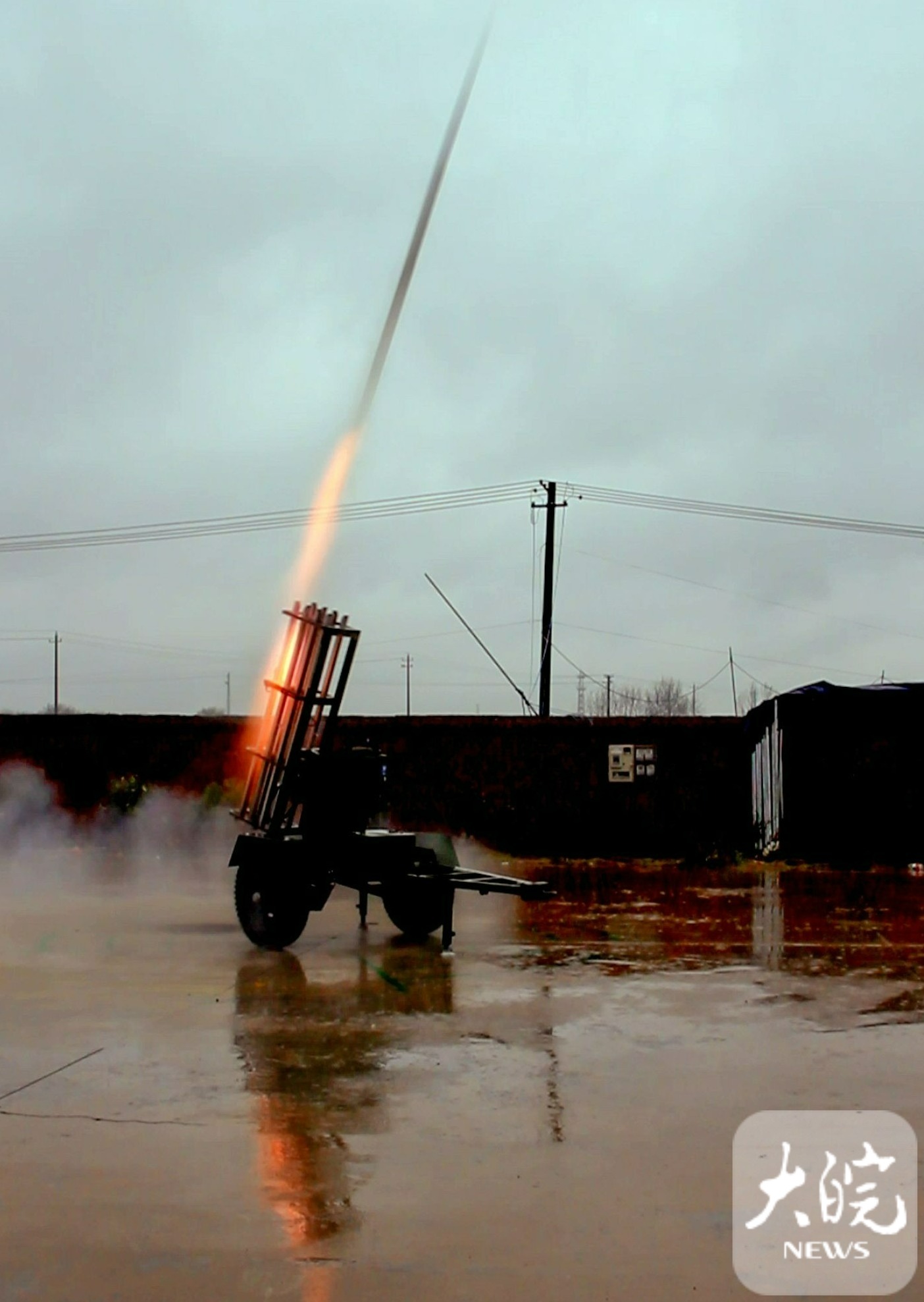 气象部门正在发射增雨火箭弹。