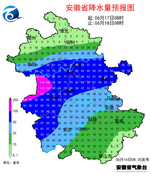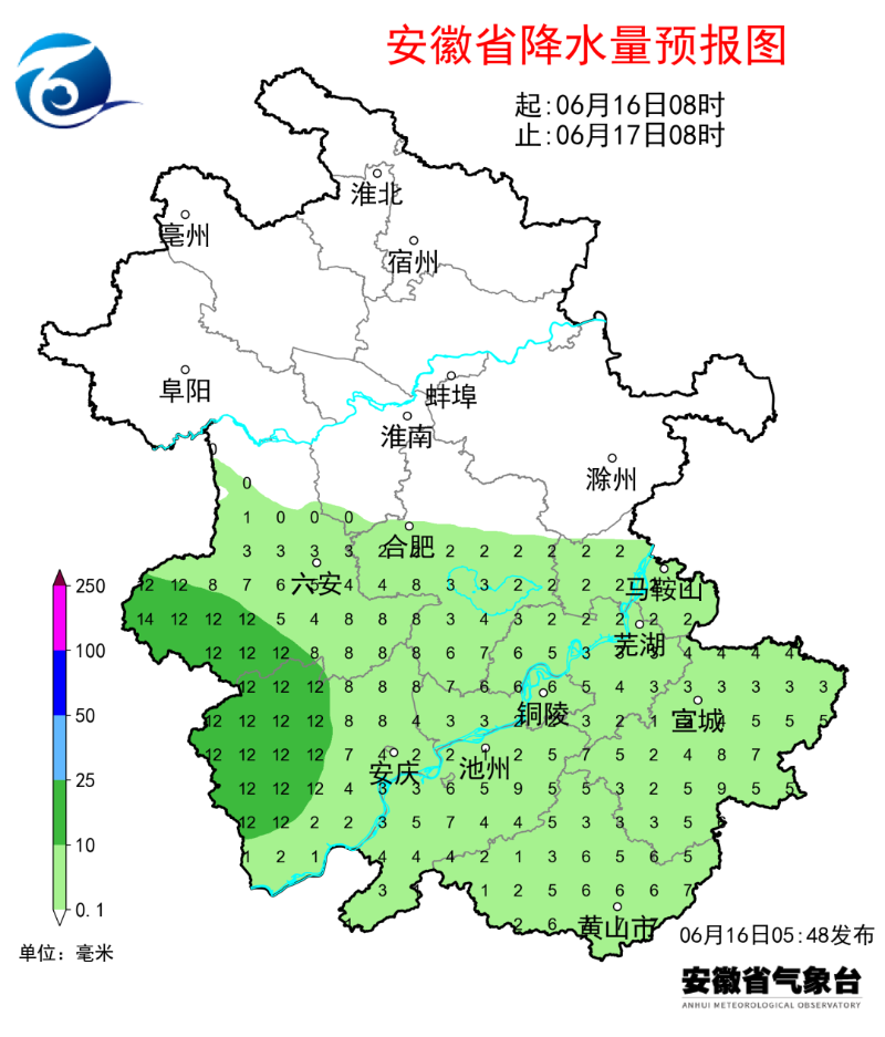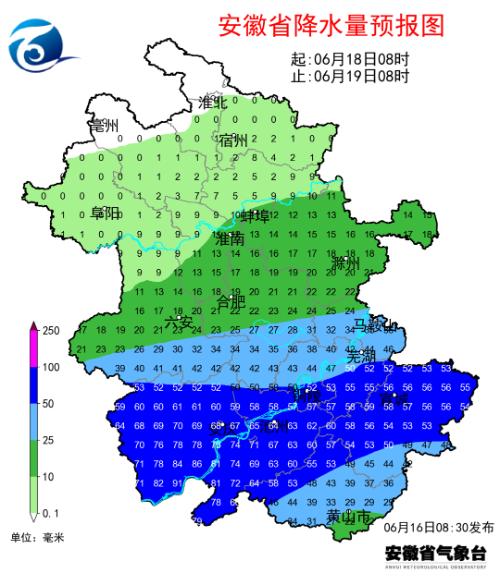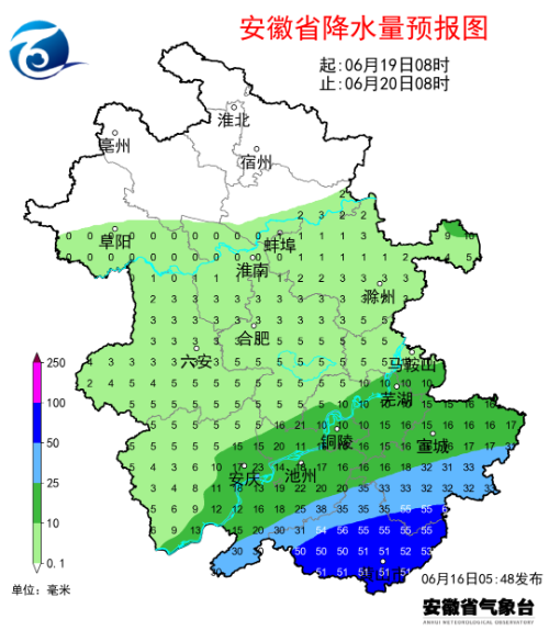 6月16日,安徽气象微信公众号发布天气预报。