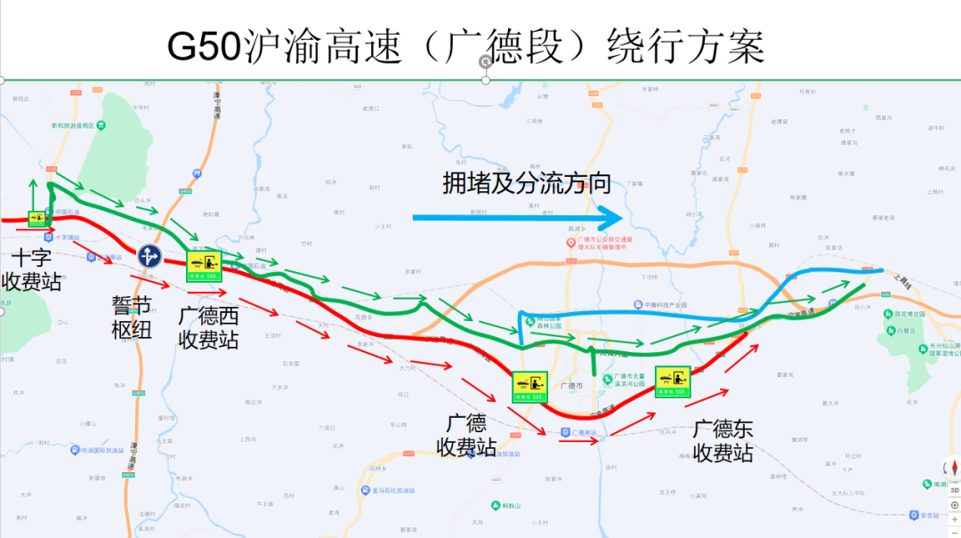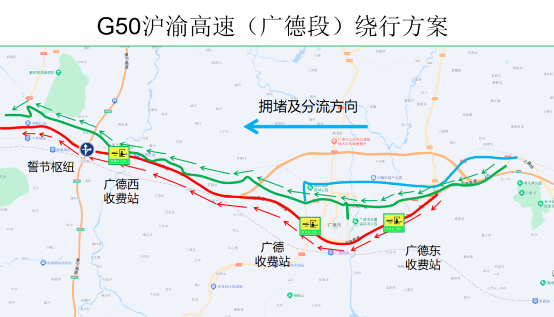 四、G50沪渝高速广德东道口至誓节枢纽段绕行建议