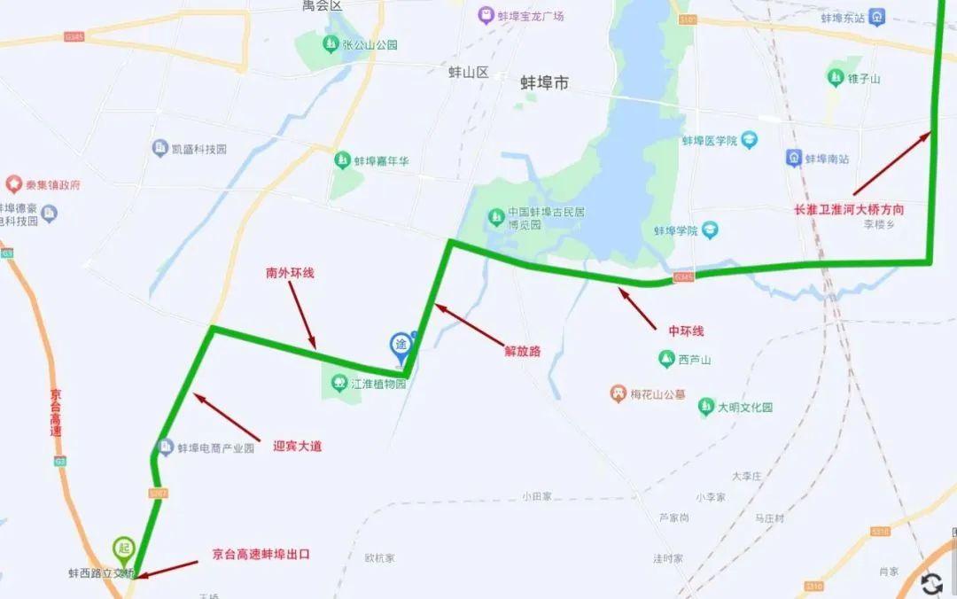 往宿州方向发生拥堵时,建议从蚌埠道口驶出经迎宾大道右转至南外环-左转解放路-右转黄山大道-左转中环线-长淮卫淮河大桥向北。