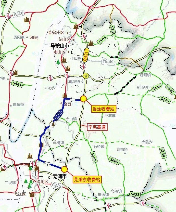 往芜湖方向发生拥堵时,建议在当涂收费站下道,由当涂收费站→S445→提署路→G205→芜湖。