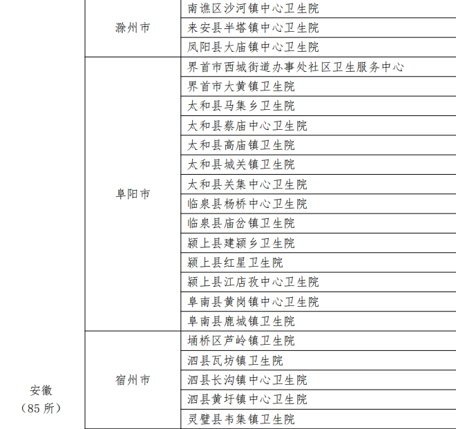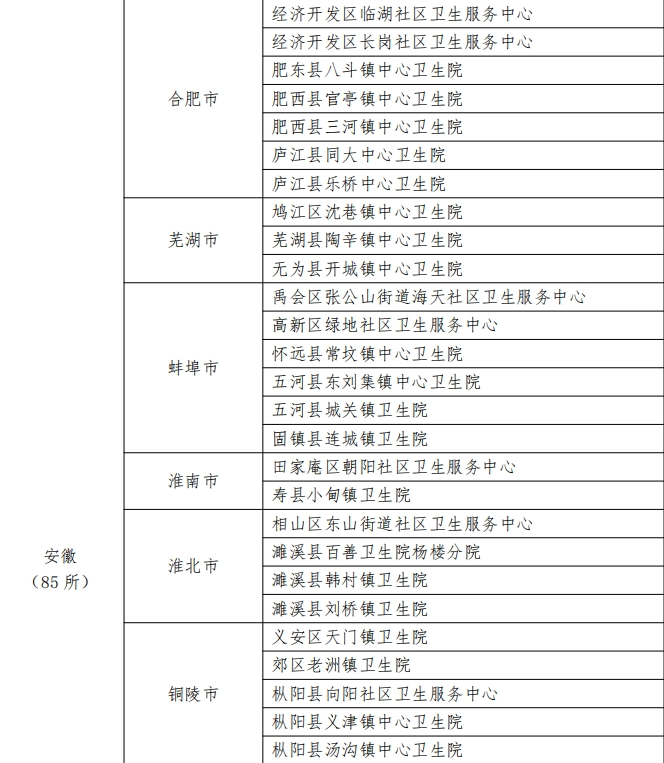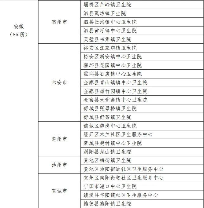 名单中,安徽共有85家基层医疗卫生机构上榜。
