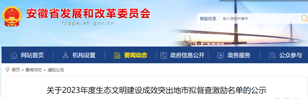 关于2023年度生态文明建设成效突出地市拟督查激励名单的公示