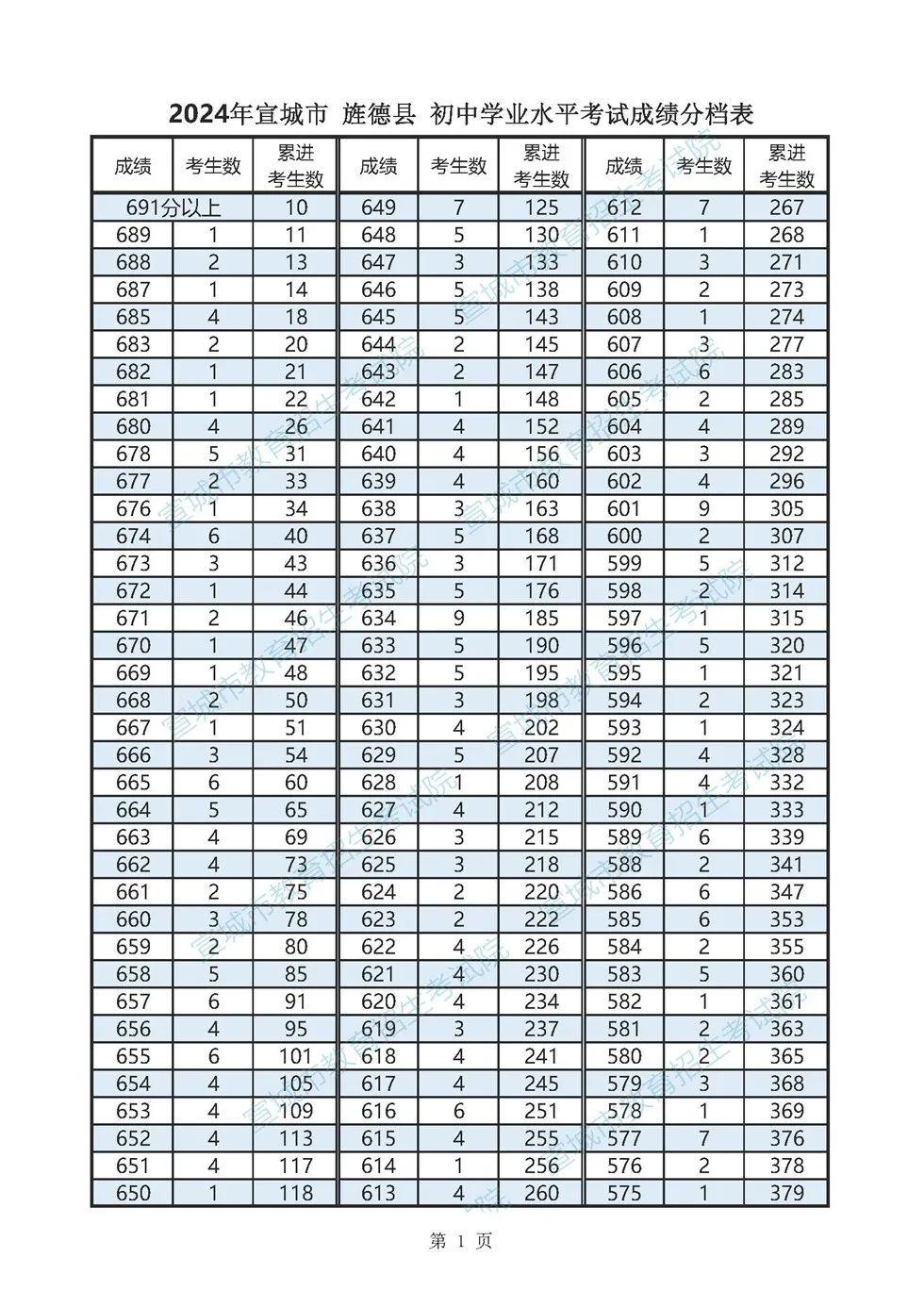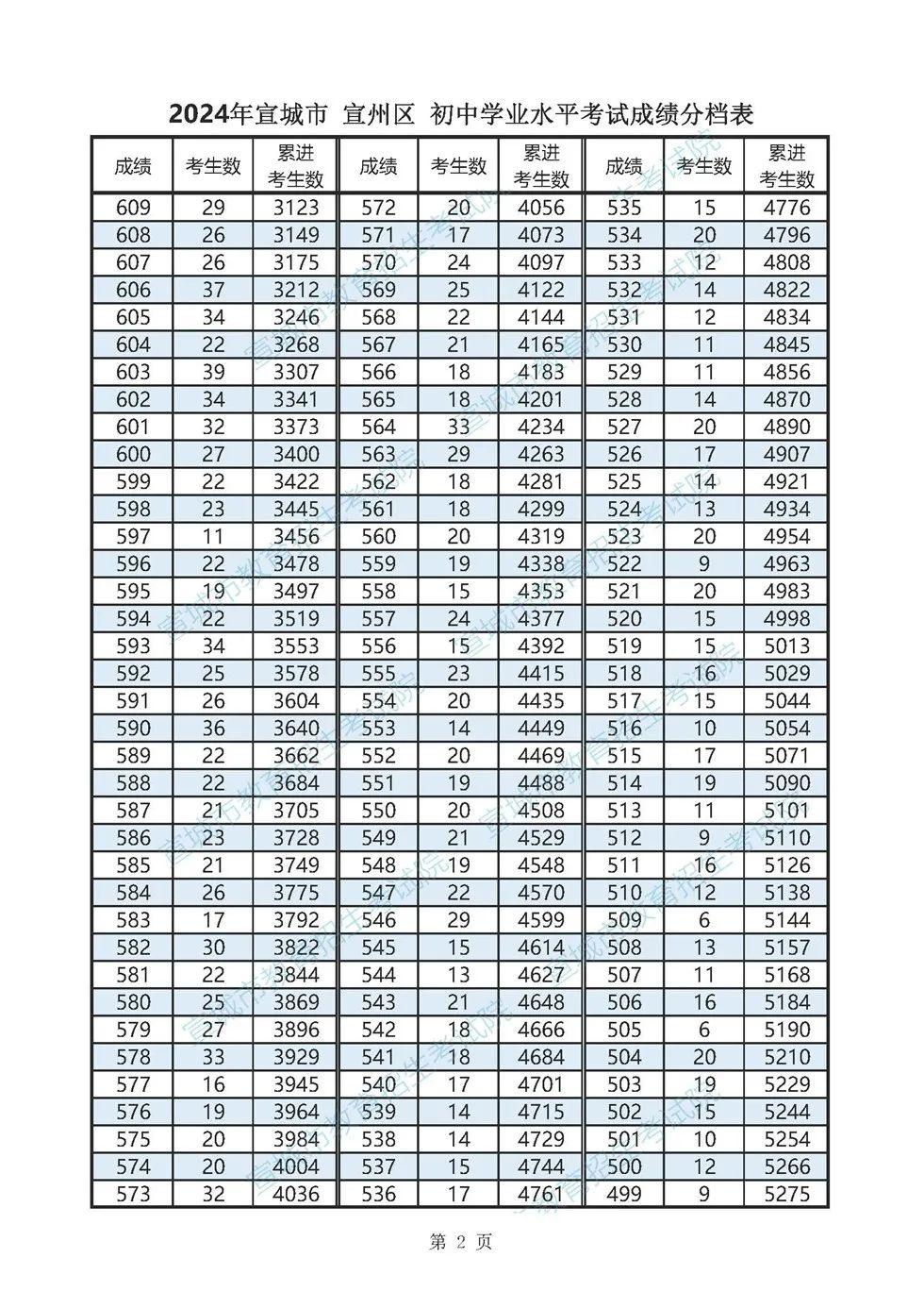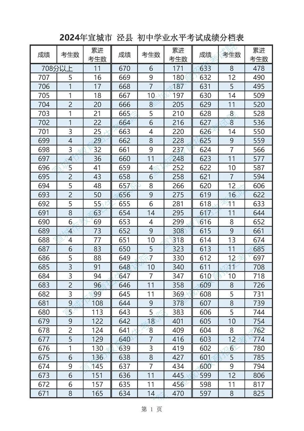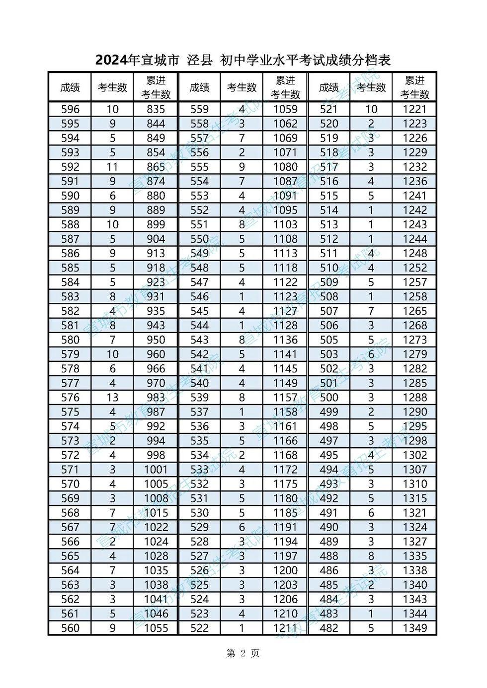 2024年宣城市各县市区普通高中最低录取控制分数线(含成绩分档表)
