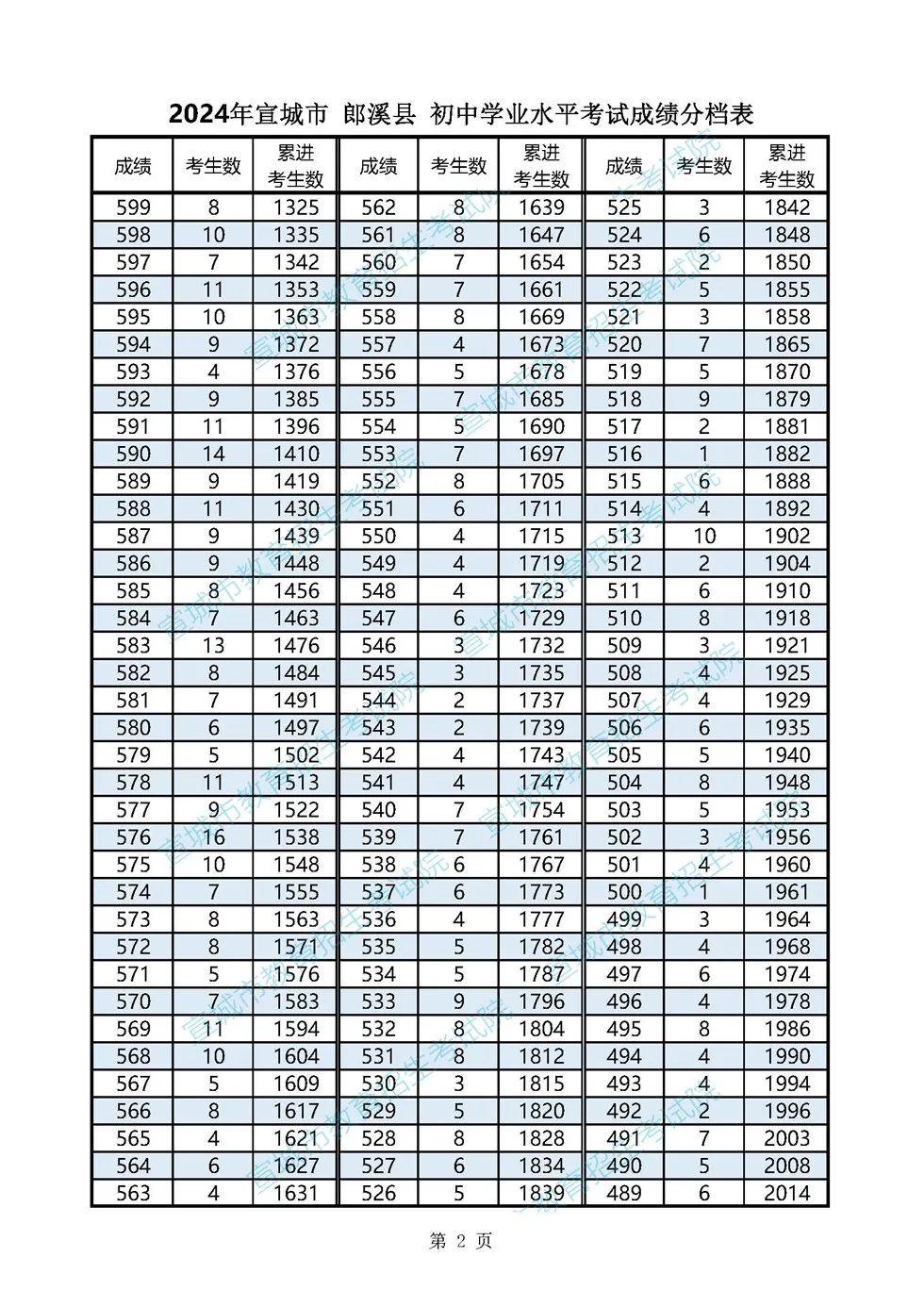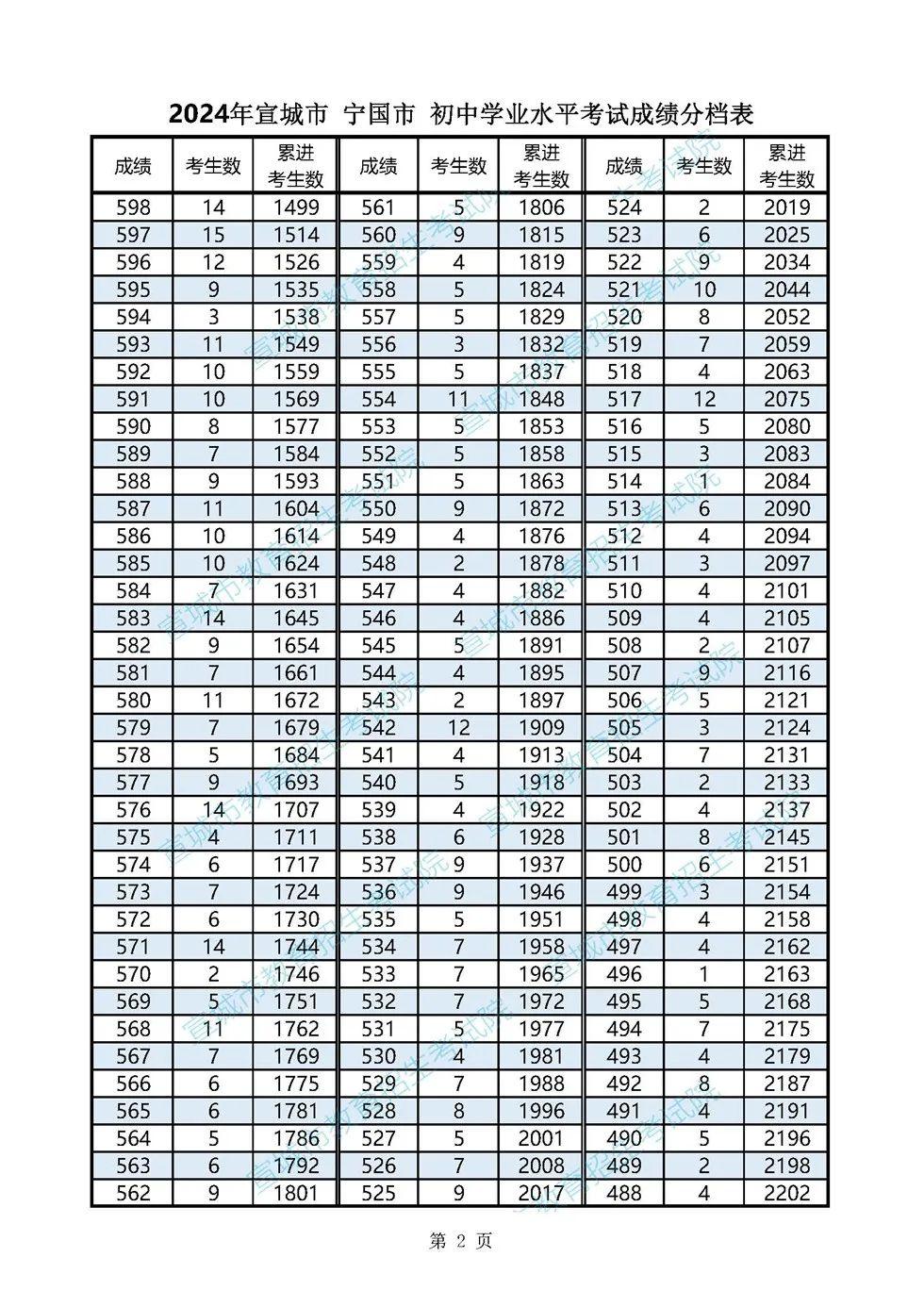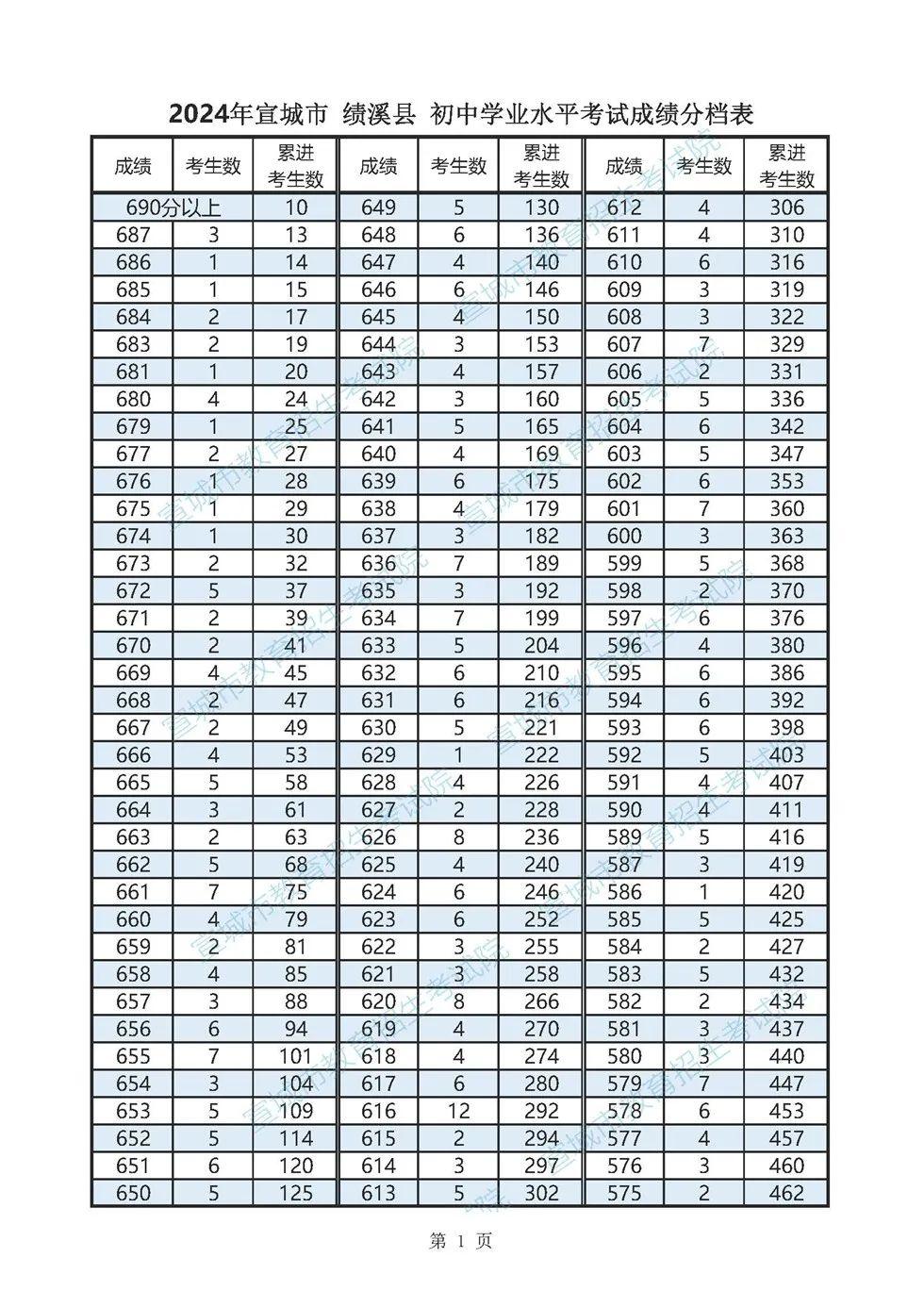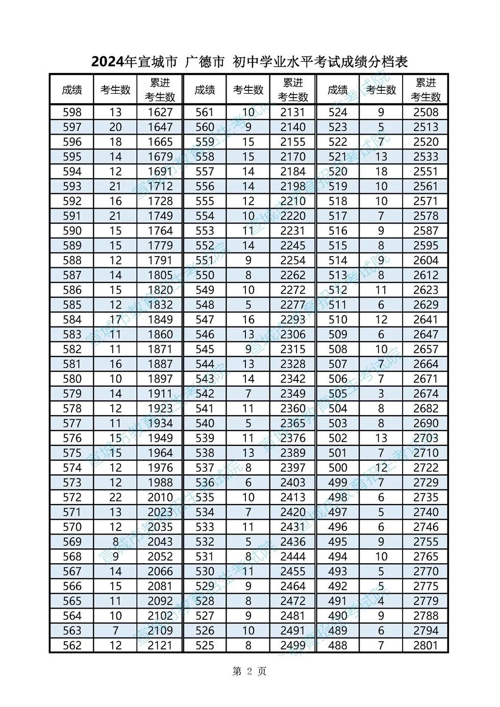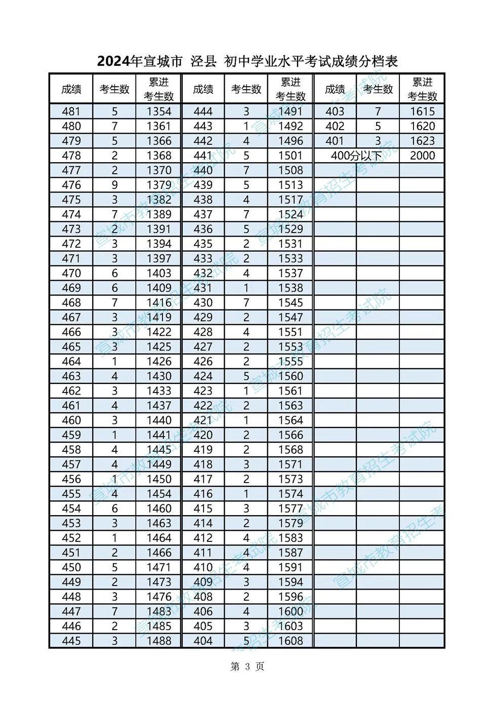 2024年宣城市各县市区普通高中最低录取控制分数线(含成绩分档表)