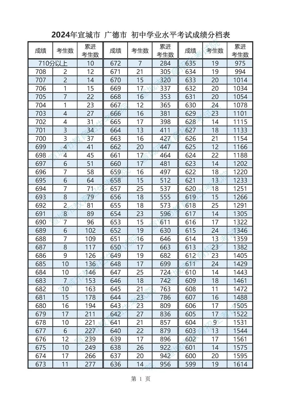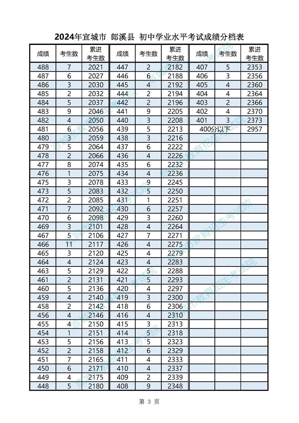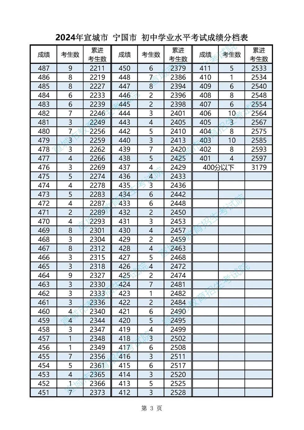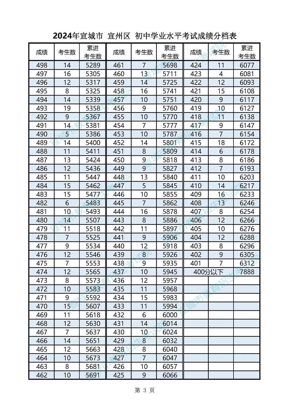 2024年宣城市各县市区普通高中最低录取控制分数线(含成绩分档表)