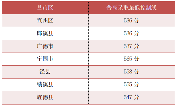 2024年宣城市各县市区普通高中最低录取控制分数线