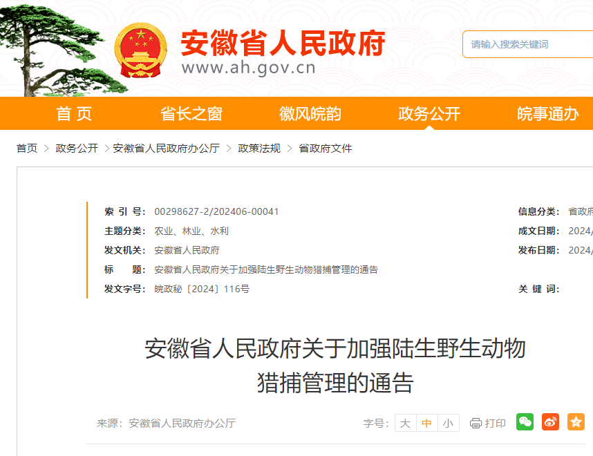 据安徽省人民政府网6月25日消息,近日,安徽省人民政府关于加强陆生野生动物猎捕管理的通告公布。通告称,根据陆生野生动物的生物学特性,哺乳类、鸟类禁猎期为每年2月1日至9月30日;两栖类、爬行类禁猎期为每年10月1日至翌年8月15日。