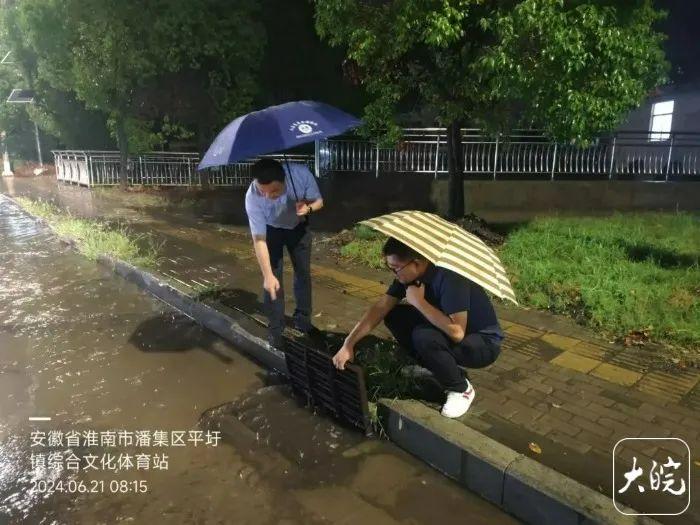 6月21日19时21分,淮南市气象台发布强对流黄色预警信号,潘集区平圩镇组织人员队伍对辖区重点路段、重点区域持续开展隐患排查。20时14分,平圩镇党委副书记、镇长陈韬带队巡查过程中,发现淮潘公路平圩段铁路下穿桥出现积水(潘集至市区主干道,日均车流量在8000辆左右),部分区域深度超20厘米,若持续强降雨,极易因积水导致车辆搁浅,诱发交通事故。
