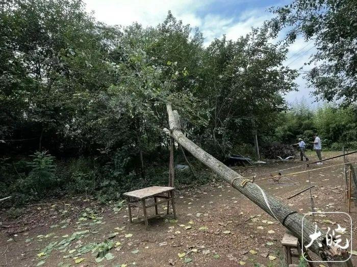 江家店镇华祖村对倒塌树木进行固定现场