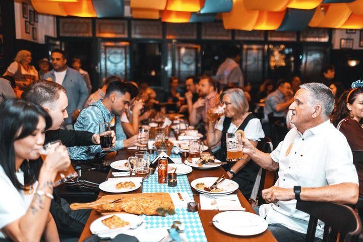 2023年10月13日,人们在安徽省合肥市“兰特伯爵”德式餐厅参加啤酒节活动。 新华社发(任丽 摄)
