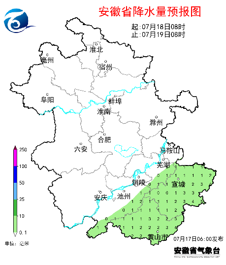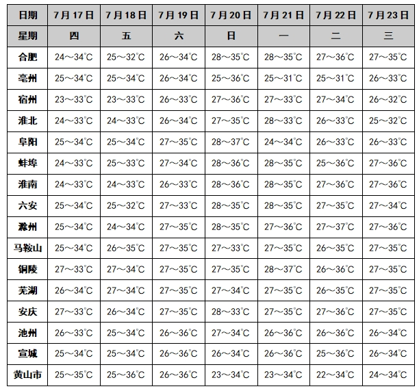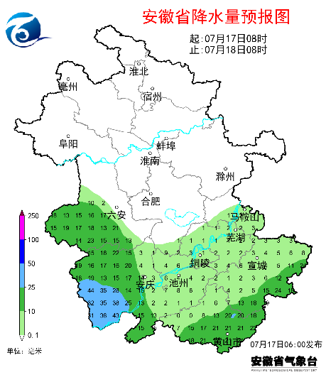 据安徽气象微信公众号消息,预计今天(7月17日)大别山区和沿江江南部分地区中到大雨;18-23日大别山区和江南部分地区有阵雨或雷雨,其中20-21日淮北地区北部有中到大雨。