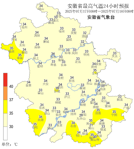 气温:未来一周全省大部分地区最高气温33~36℃,局部超过37℃。