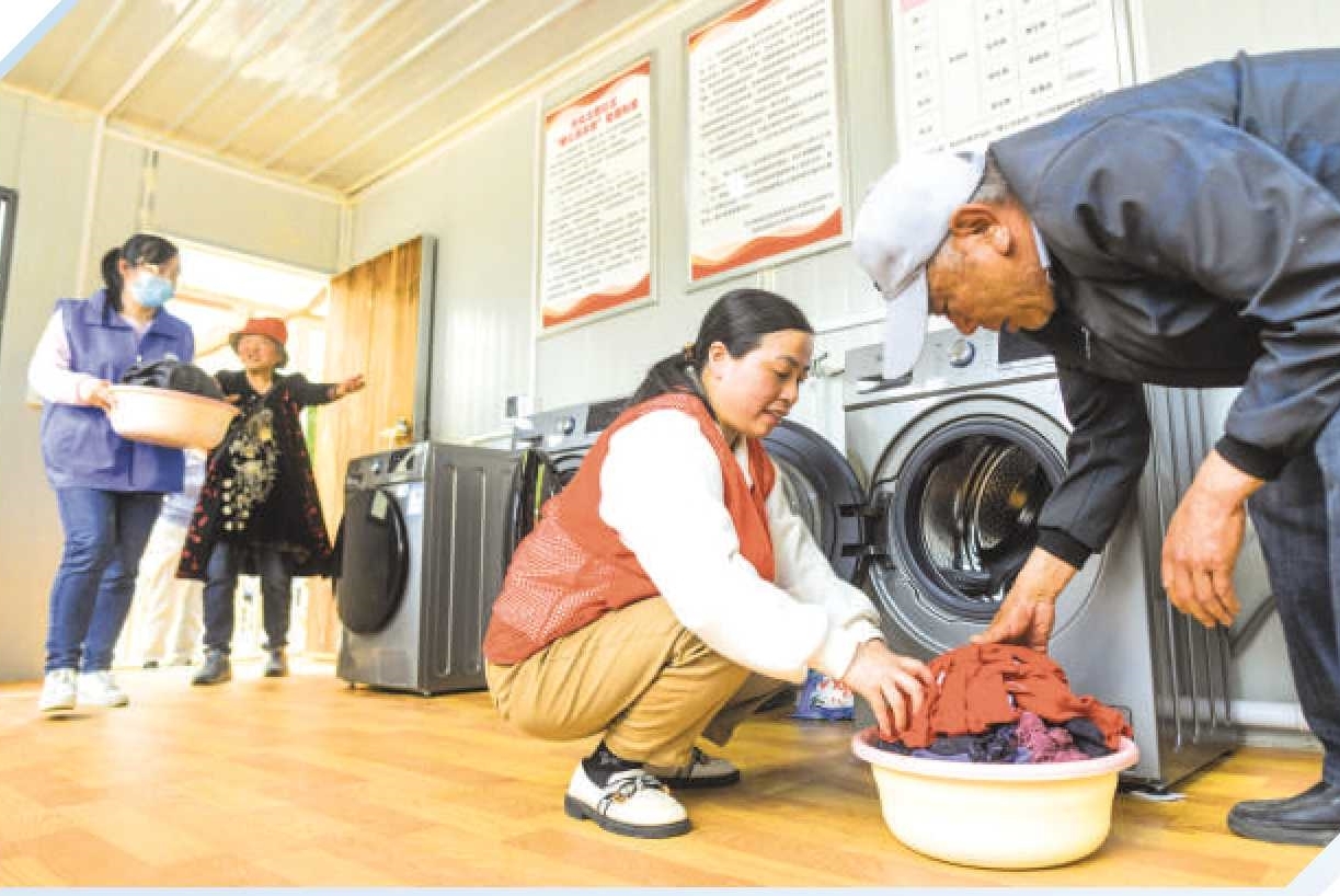 提供爱心洗衣房,困难群众和老人衣物免费洗。杨毅 摄