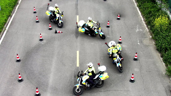 4月14日,安徽省涡阳县公安局组织交警铁骑队员开展春季大练兵。图为铁骑队员进行绕桩练习。 本报通讯员 吴胜利 摄