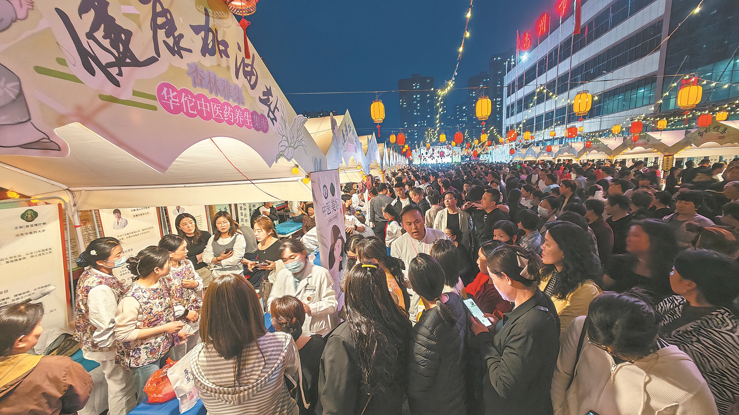 本报讯(记者 任雷 朱芳 常欢欢)逛夜市、看非遗、品药膳、学养生……4月16日至19日,每晚六点半至八点半,亳州市华佗中医院西院区热闹非凡。2026年“百市千县”中医药文化惠民活动暨“华佗中医药养生市集活动”如期举行,让当地居民在家门口沉浸式体验别开生面的养生“奇妙夜”。