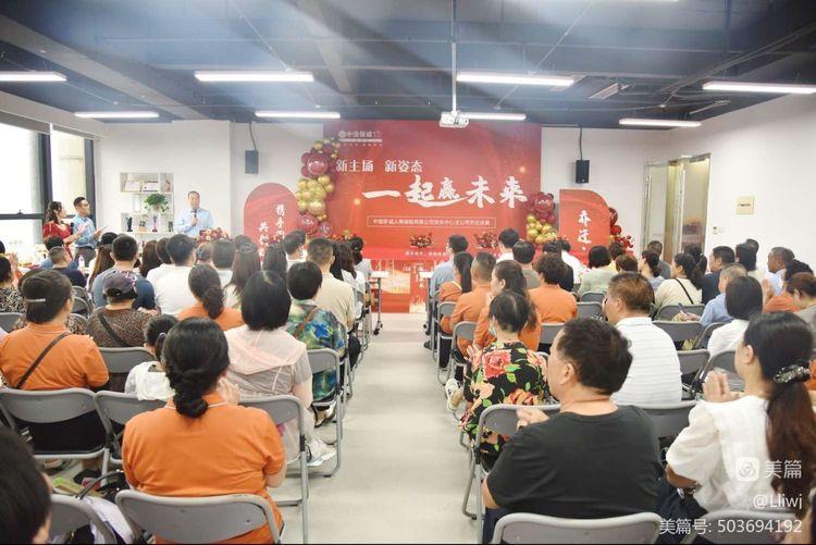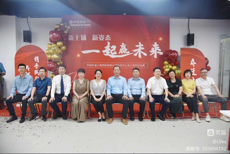 2023 年 7 月 8 日 10 点18 分,中信保诚人寿安庆中心支公司在新职场举办了以“新主场 新姿态 一起赢未来”为主题的乔迁庆典。中信保诚人寿安徽省分公司总经理孙玉利总、副总经理唐亚伟总,安庆市保险行业协会副秘书长陈佳女士,中信银行安庆分行副行长何小银先生、中信银行安庆分行零售银行部总经理丁咚女士、中信银行安庆菱湖南路支行行长司崎先生、安庆美年大健康产业有限公司总经理吴满红女士、安徽长鑫建设工程有限公司总经理李文先生、客户代表鲍金林女士以及分公司各部门负责人,共计120 余人共同见证了这一盛大庆典。