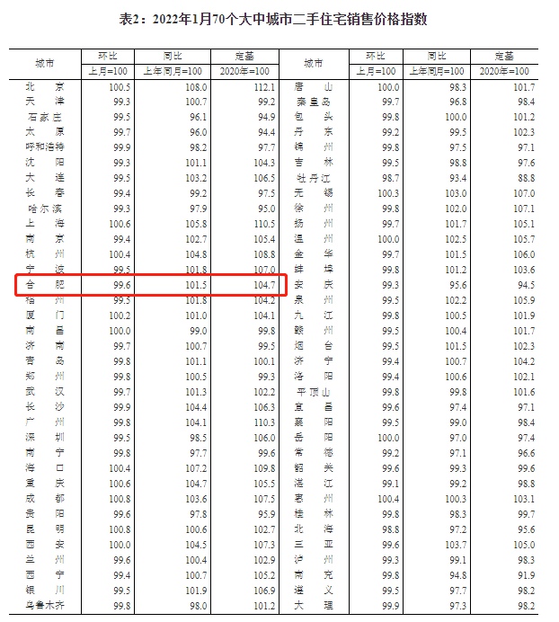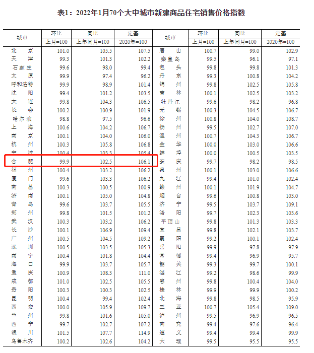 从数据上来,与2021年12月份相比,今年1月,合肥新建商品住宅销售价格环比下降0.1%,二手商品住宅销售价格环比下降0.4%。与2021年1月相比,新建商品住宅和二手商品住宅销售价格分别上升2.5%、1.5%。与2020年相比,合肥新建商品住宅和二手商品住宅销售价格分别上涨6.1%和4.7%。