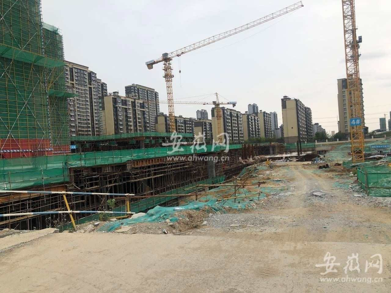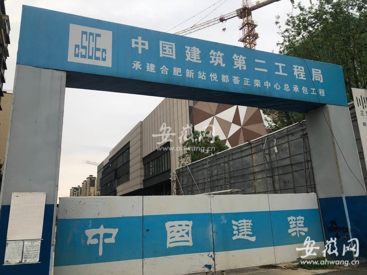 5月16日,新安晚报、安徽网、大皖新闻记者来到位于合肥市淮海大道与大众路交口附近的悦都荟正荣中心。透过工地大门,记者看到里面已经建设了一部分,一栋建筑已建成多层,但现场看不到有施工迹象,很多机械设备处停运状态。随后记者来到附近的一处项目部,记者看到项目部大门紧锁,里面没有工作人员,大门上被贴上小广告无人清理,门把手还有信封邮件等物品。