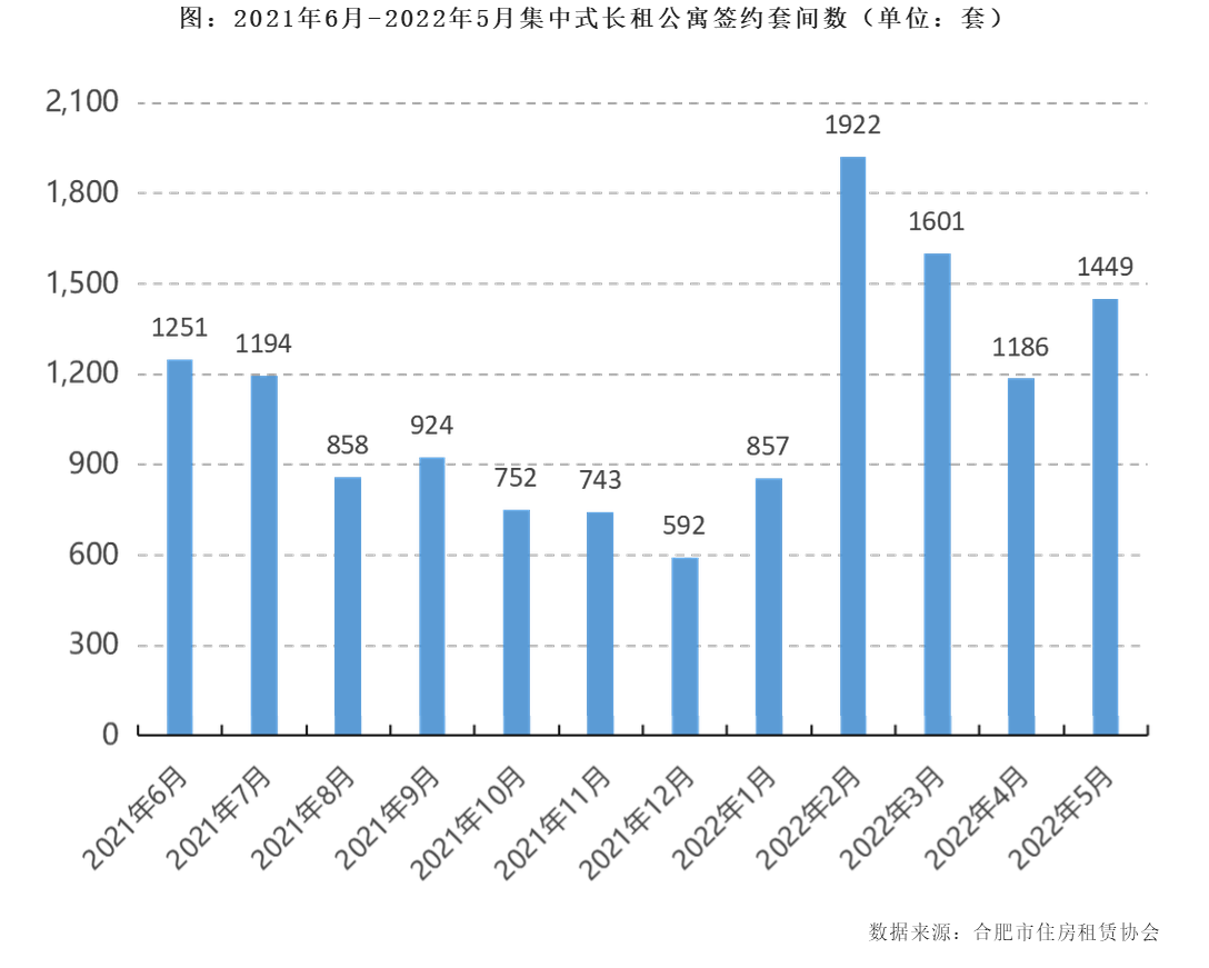 新安晚报 安徽网 大皖新闻讯 租赁市场热度出现上升,签约套数环比增长22.2%;退租套数环比增长4.8%,滨湖新区空置率依旧最高;55.0%的租客套均租金在1000-1500元之间……6月15日,记者了解到,合肥市住房租赁协会发布2022年5月集中式项目月度运营简报。