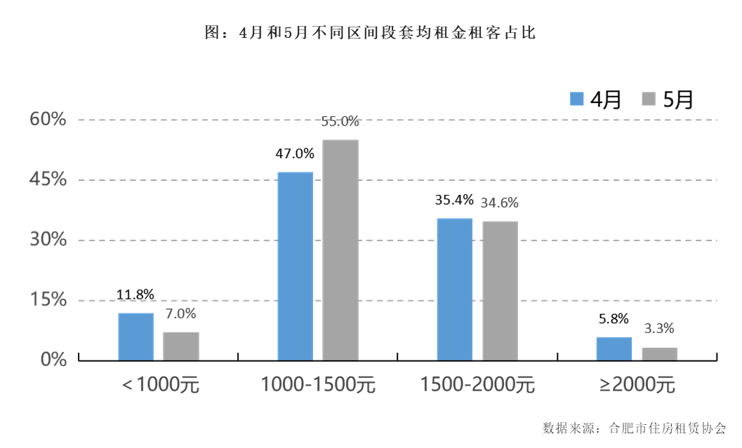 55.0%的租客套均租金在1000-1500元之间