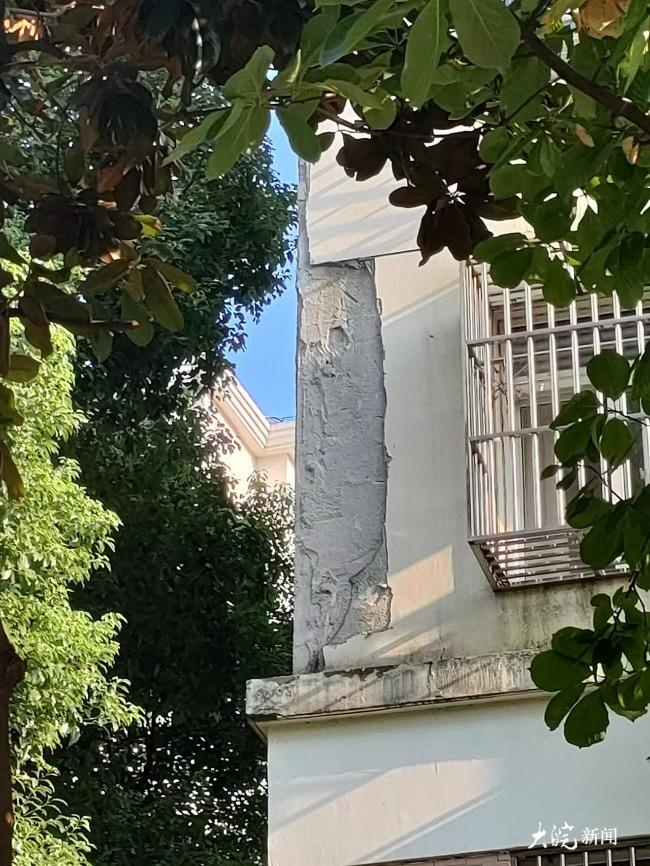 “掉墙皮时间大概有一周多了,也不是一天掉的,我们现在每天巡逻都很注意,提醒不要靠近。”在该小区巡逻的一名保安员说。