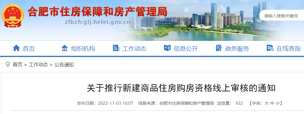 大皖新闻讯 11月3日下午,合肥市住房保障和房产管理局发布了《关于推行新建商品住房购房资格线上审核的通知》(以下简称《通知》),加强商品住房购房资格审查和管理,调整市区限购区域购房流程。