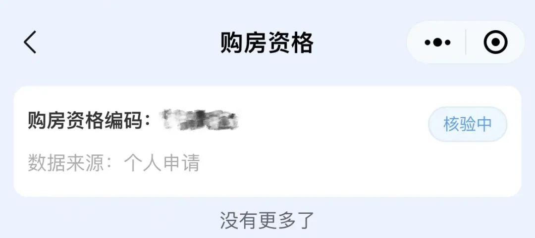 然后进入购房资格页面,可以看到购房资格编码及核验状态信息。稍等几分钟后再刷新页面,查看核验状态。