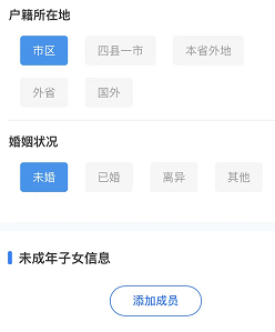 认证通过后点击“购房资格申请”,阅读用户须知,填写申请人信息、户籍所在地、婚姻状况、未成年子女信息等。