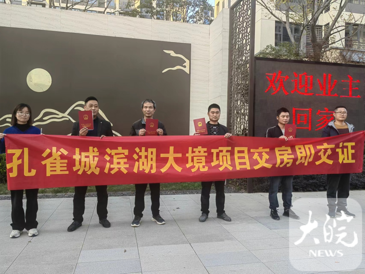当日上午,为确保孔雀滨湖大境项目“交房即发证”顺利进行,开发企业选取部分业主代表提前进行房屋交付。同时颁发不动产权证,成功开展了“交房即发证”活动。业主代表们看着手中的新房钥匙和不动产权证,喜悦之情,溢于言表。