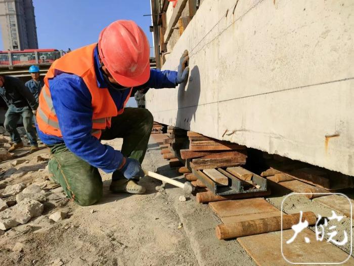 大皖新闻讯 11月20日上午,蚌埠市朝阳路淮河公路桥下,作为蚌埠市文保单位的宝兴面粉厂阁楼开始整体平移工程,依照施工进度,整个平移工程将持续12日左右。