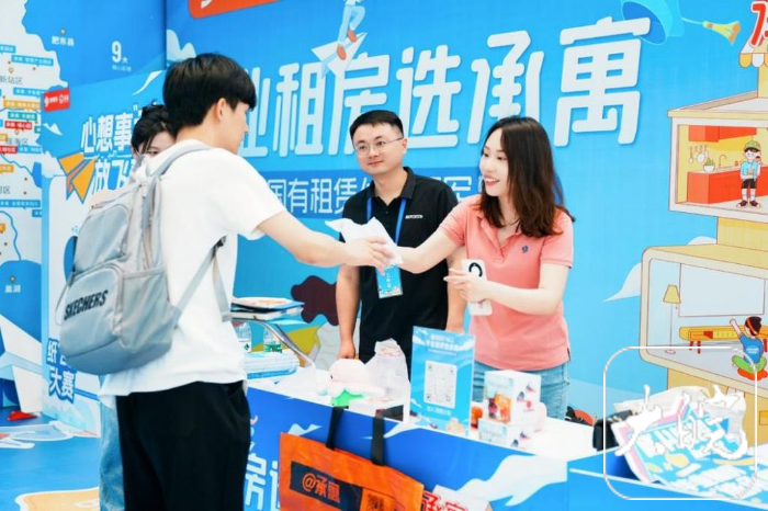 活动现场还设置了风格多样的特色互动体验板块,多个展区提供了不同形式的房源信息便于大家了解,并为广大毕业生准备了精致的小礼品,各种仪式满满的互动环节,更好地展示了青年人美好的租住生活场景,也进一步增强了租房体验感。