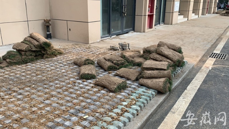 10月24日下午,记者来到小区物业处咨询,工作人员告诉记者,小区和商业街均未正式移交给该物业公司管理,他们对此并不知情。正在施工的工人告诉记者,草坪铺在地上只是走过场,过段时间就移除了,“听说是为了验收啊,现在验收不了。随后,记者来到商业街的售楼部,工作人员称,商业街确实尚未验收,对于水泥地上铺草坪一事,他们不知情。