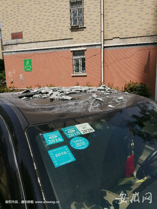 合肥一小区居民楼保温层脱落砸中隔壁轿车