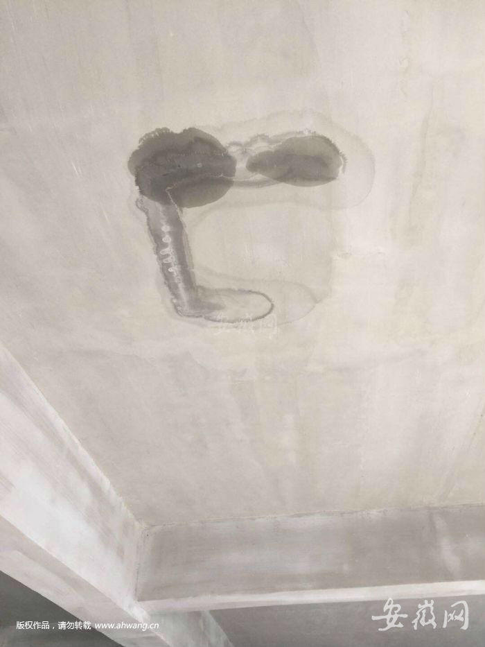 ”徐女士说,交房后,她们特意找来一位懂行的亲戚,给房子做了蓄水试验等系列检测,最后发现房间主卧、客厅存在多处较大范围渗水现象,同时地面、墙体等三四十处发现空鼓……2月25日,徐女士一家再次从合肥赶到池州,并带记者到新房中查看。”近日,朱先生的妻子徐女士向新安晚报、安徽网、大皖客户端反映称,2016年11月,其老公朱先生在老家池州的长江中路君悦玺园小区某栋24层买了一套100余平米的房子,“当时房价在当地算高的。”徐女士介绍,此外,室内检测还发现三四十处空鼓,空鼓面积超过50%,“而且从现场看,交房前,开发商已经进行过一次空鼓维修了,现在竟然还有这么多,真让人担心整体房屋质量。