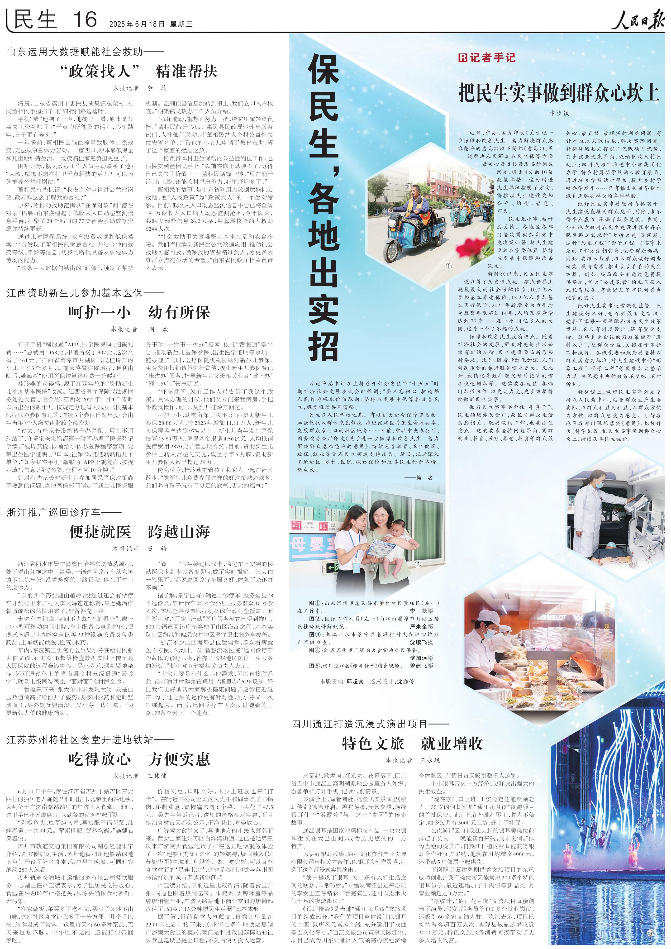 民生是人民幸福之基。有效扩大社会保障覆盖面、加强低收入群体兜底帮扶、推进优质医疗卫生资源共享、发展群众家门口的社区服务……日前,中共中央办公厅、国务院办公厅印发《关于进一步保障和改善民生 着力解决群众急难愁盼的意见》,持续完善教育、卫生健康、社保、就业等重点民生领域支持政策。近日,记者深入多地社区、乡村、医院,探访保障和改善民生的新举措、新成效。